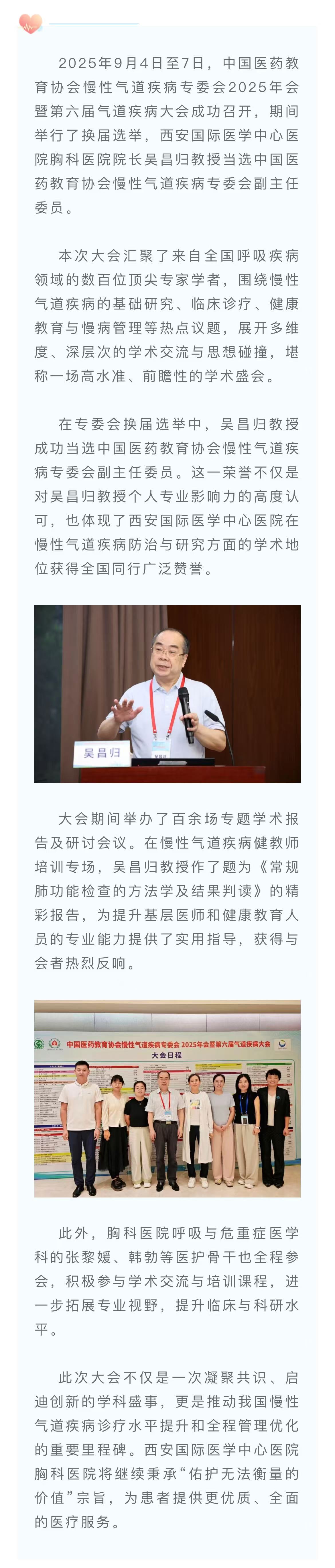 吳昌歸教授當(dāng)選中國醫(yī)藥教育協(xié)會慢性氣道疾病專委會副主委