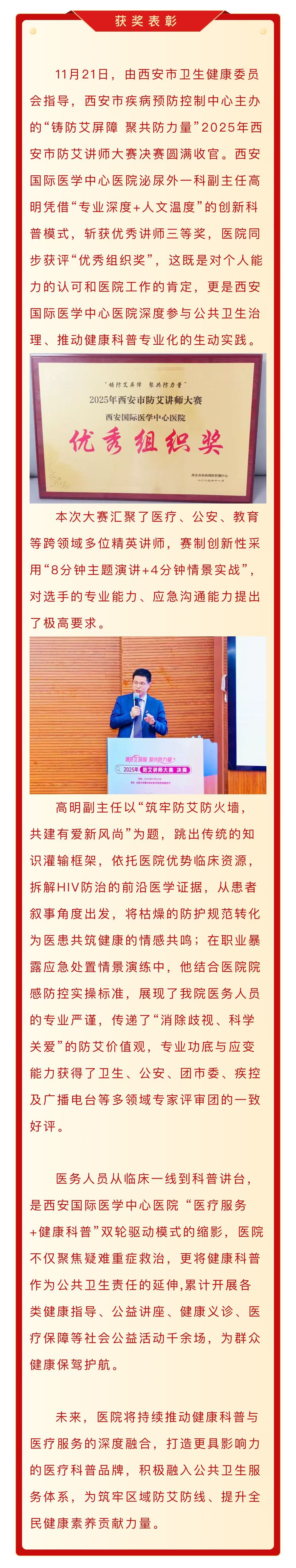 捷報(bào)頻傳——我院獲2025年西安市防艾講師大賽決賽個(gè)人、集體獎(jiǎng)項(xiàng)