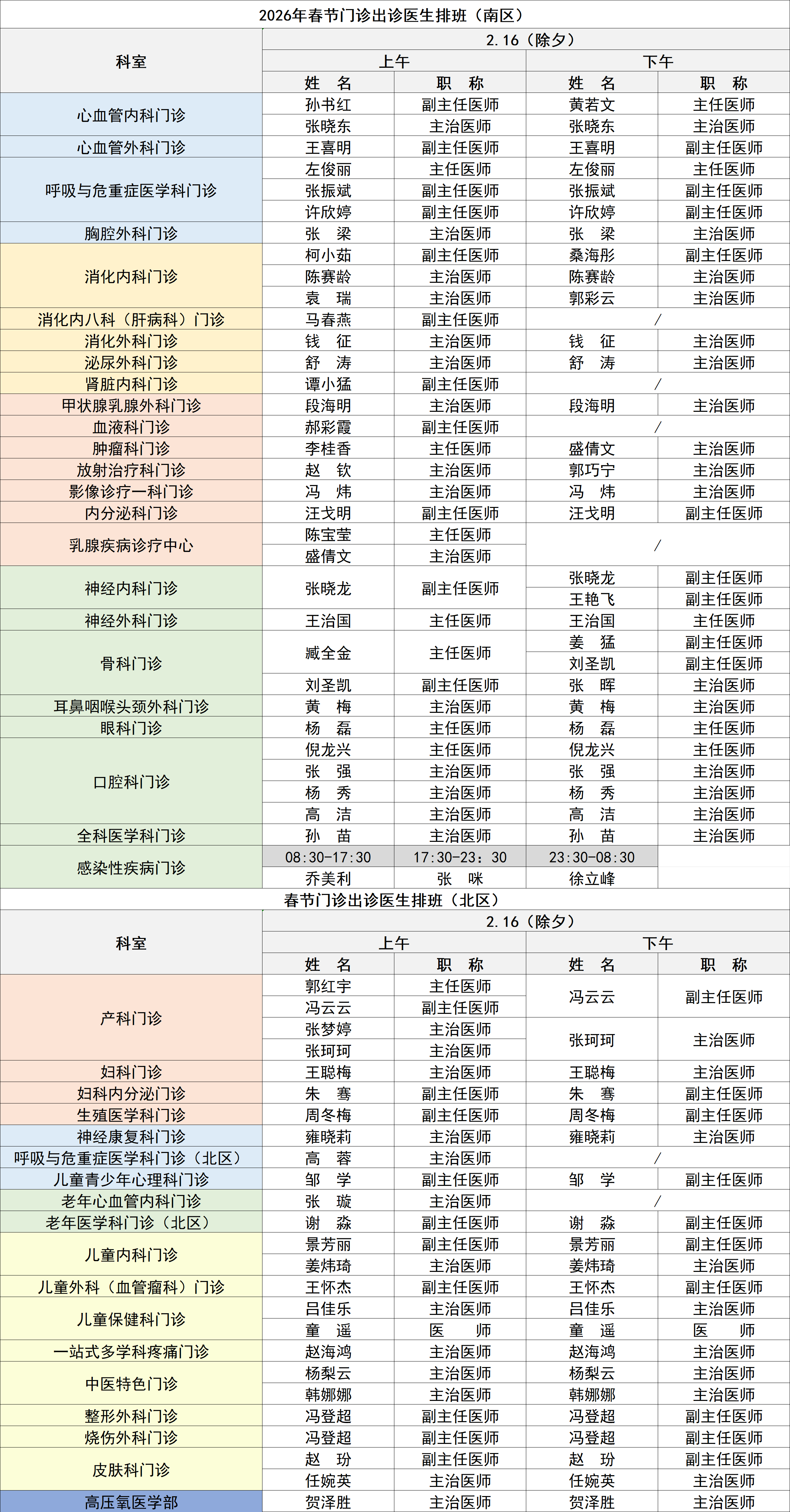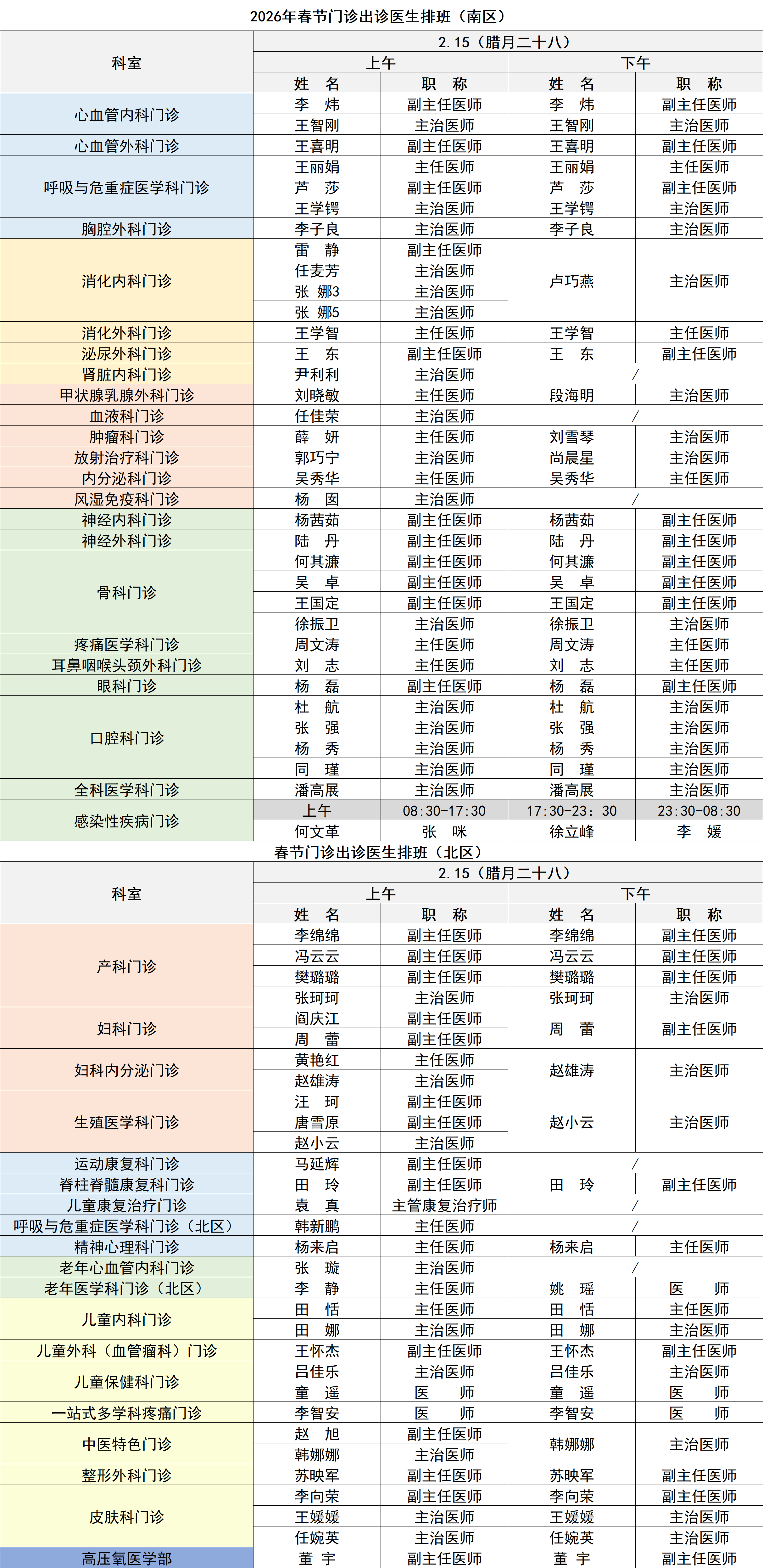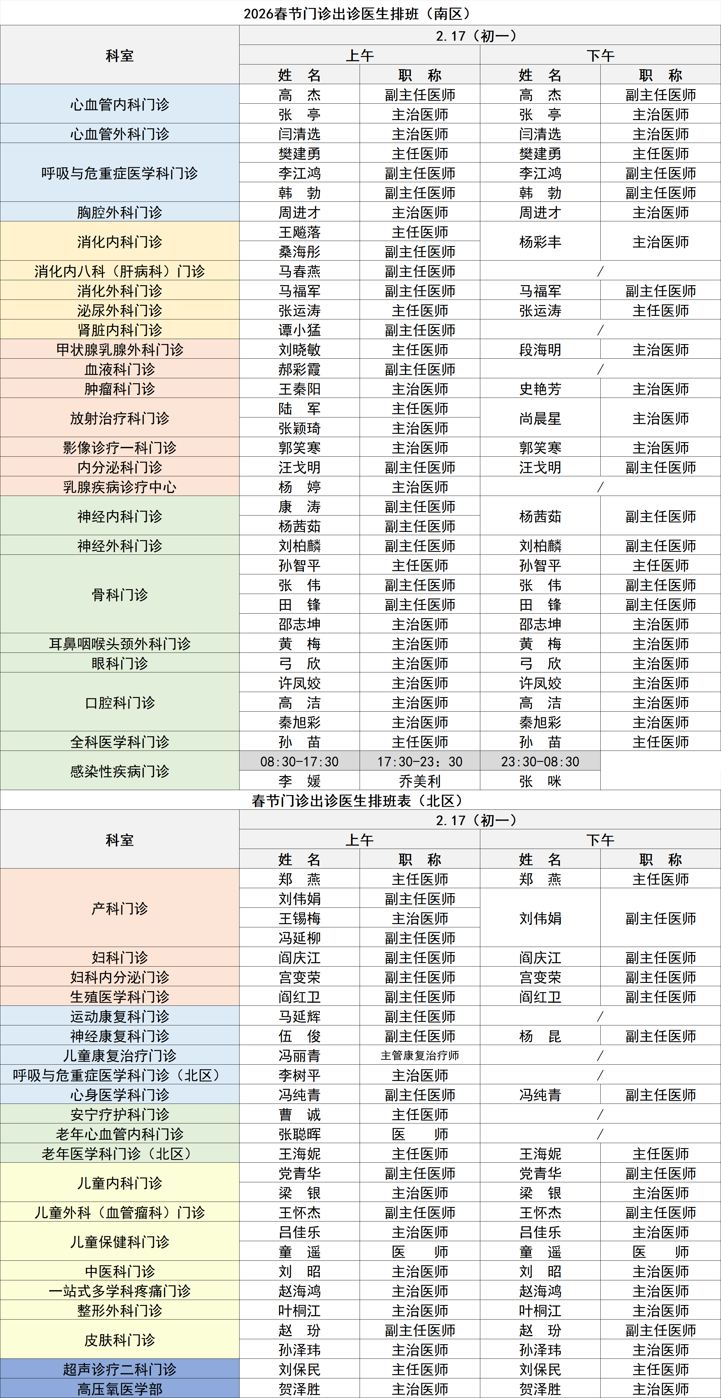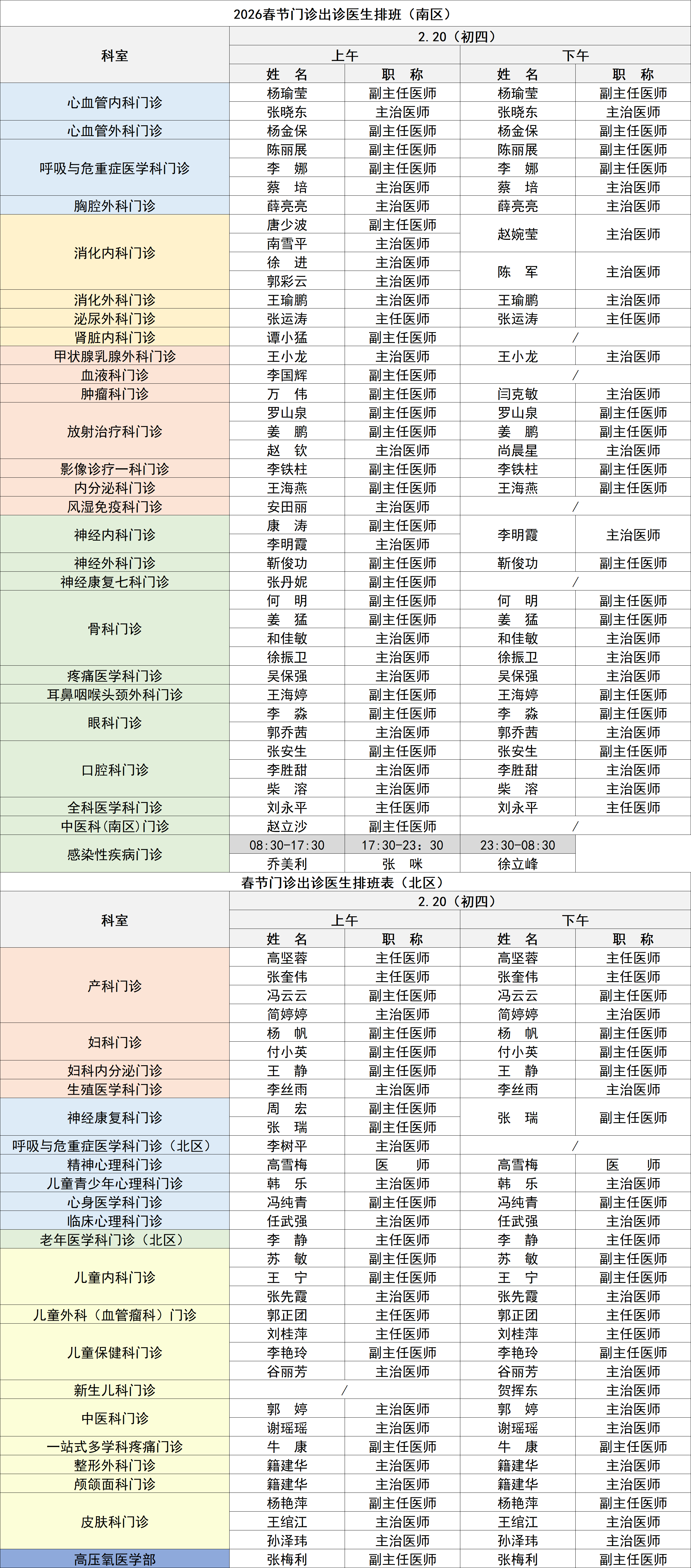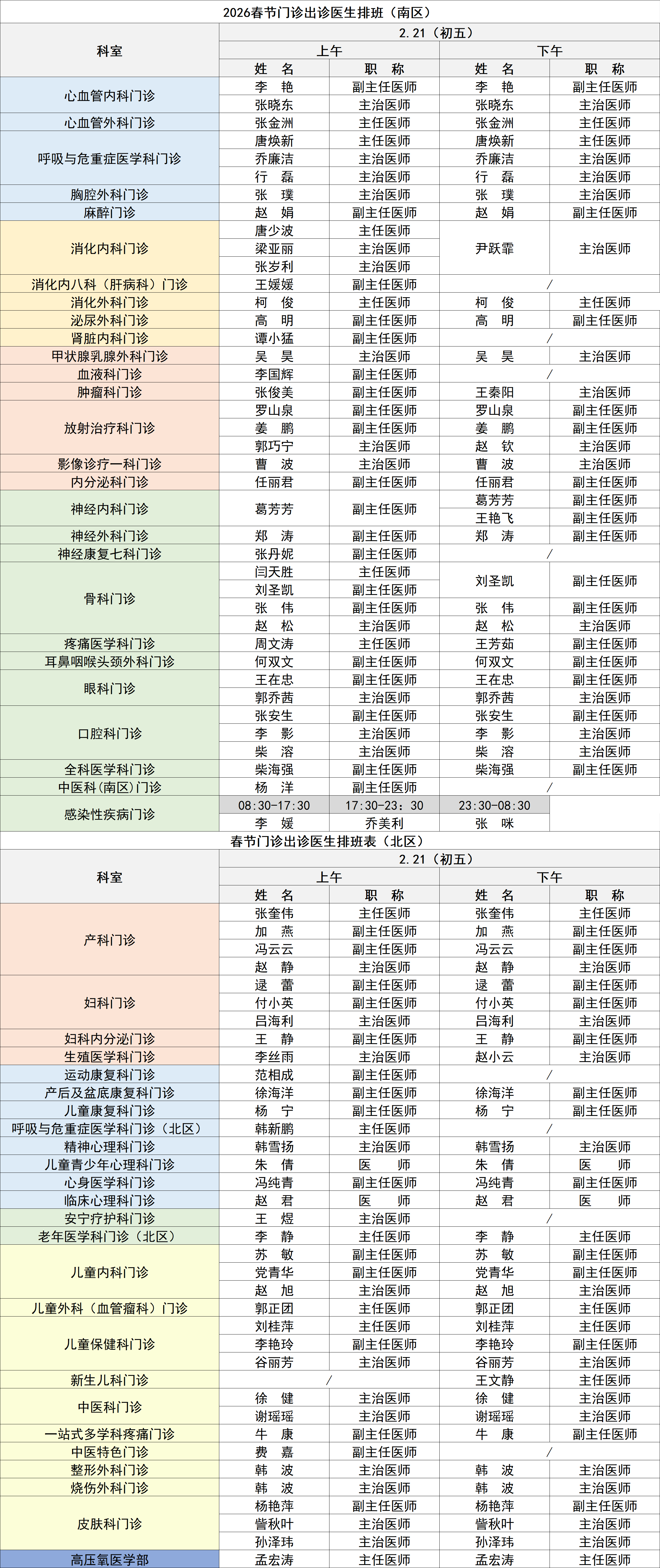 西安國際醫(yī)學中心醫(yī)院春節(jié)門診排班