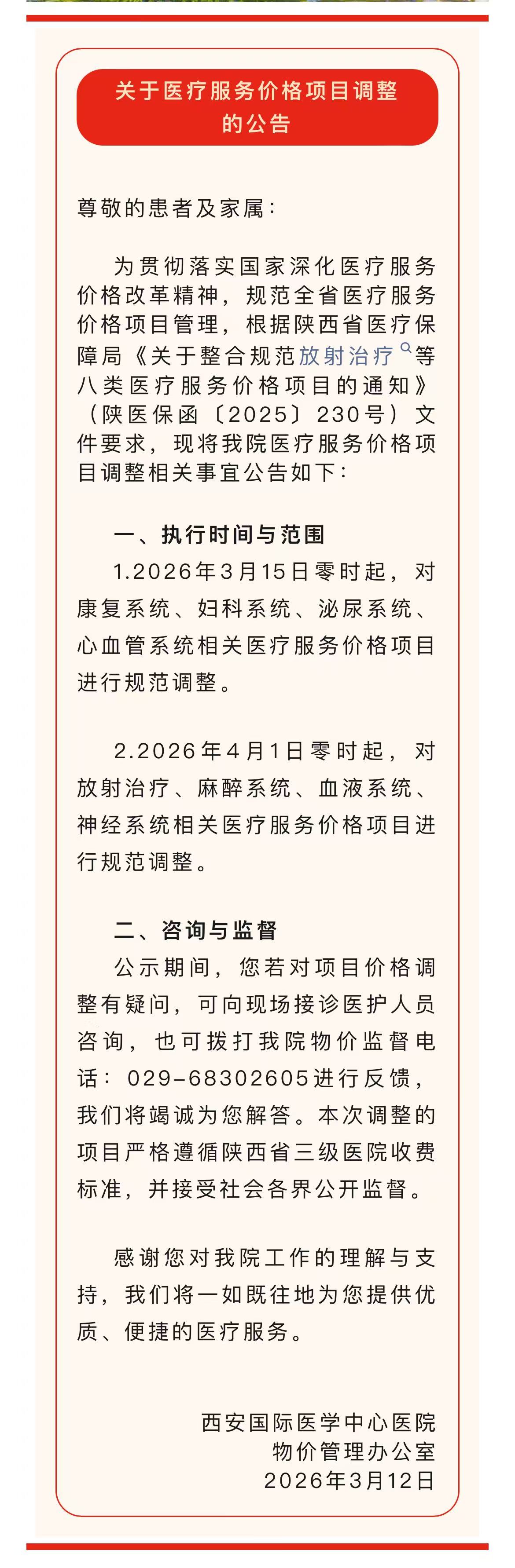 關(guān)于醫(yī)療服務(wù)價格項目調(diào)整的公告