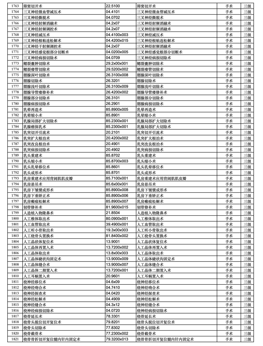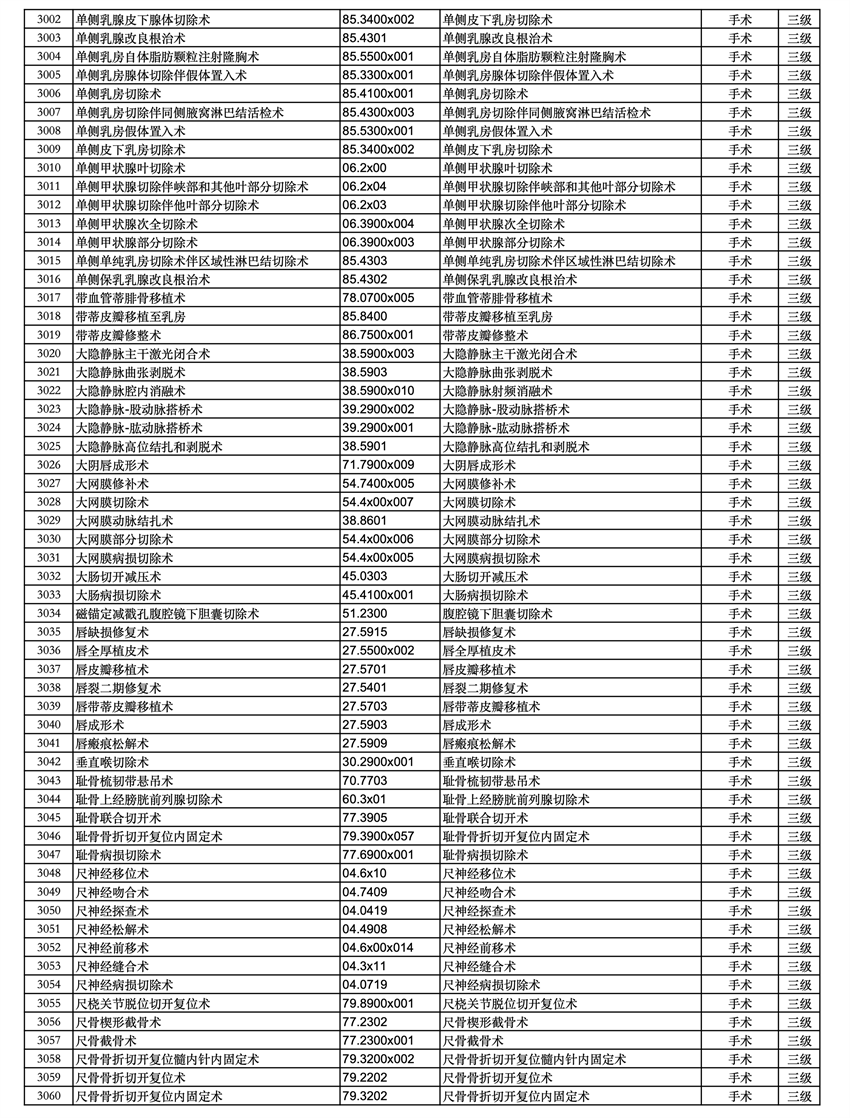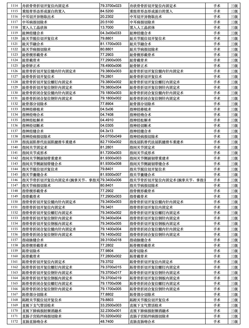 三、四級(jí)手術(shù)分級(jí)目錄