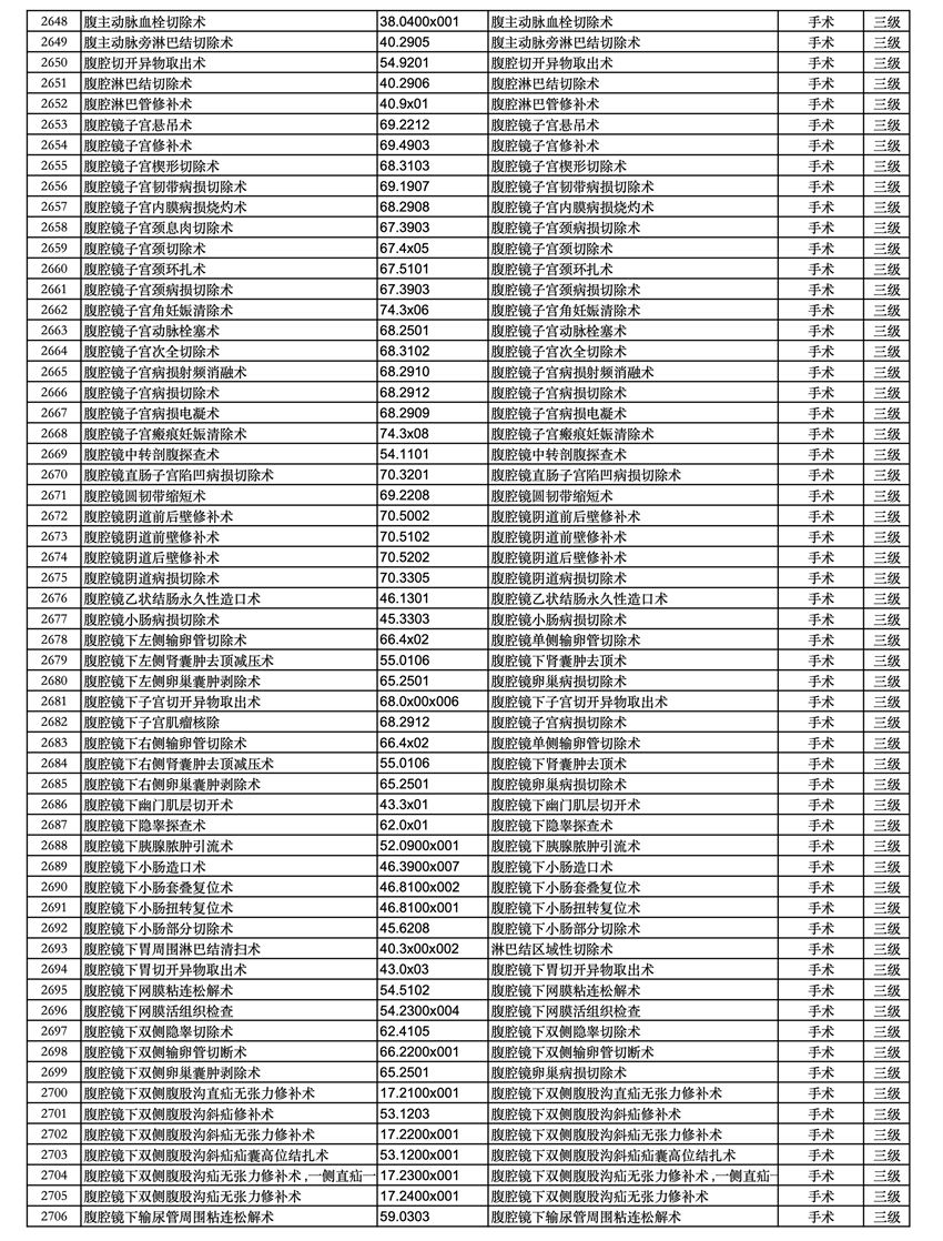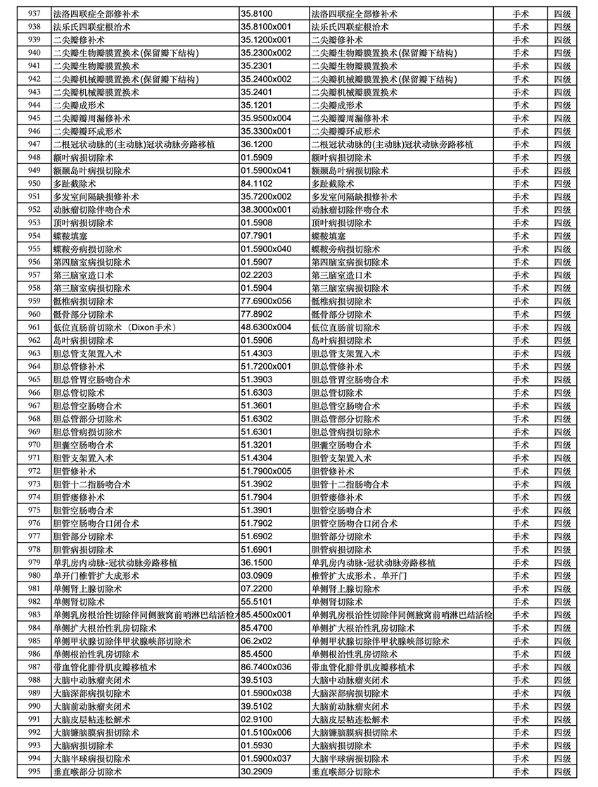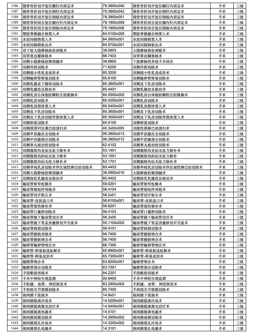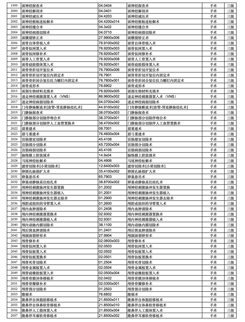 三、四級(jí)手術(shù)分級(jí)目錄